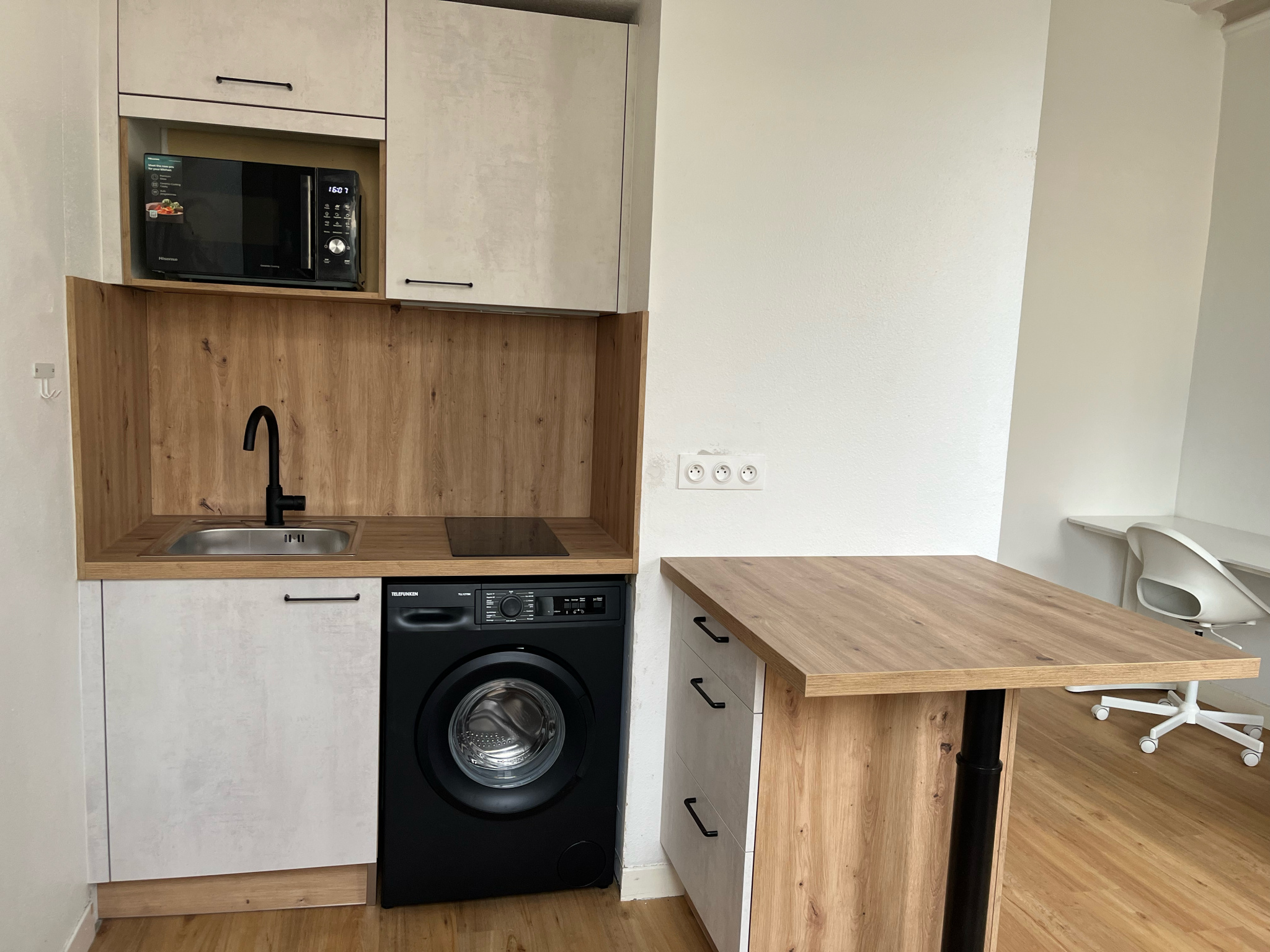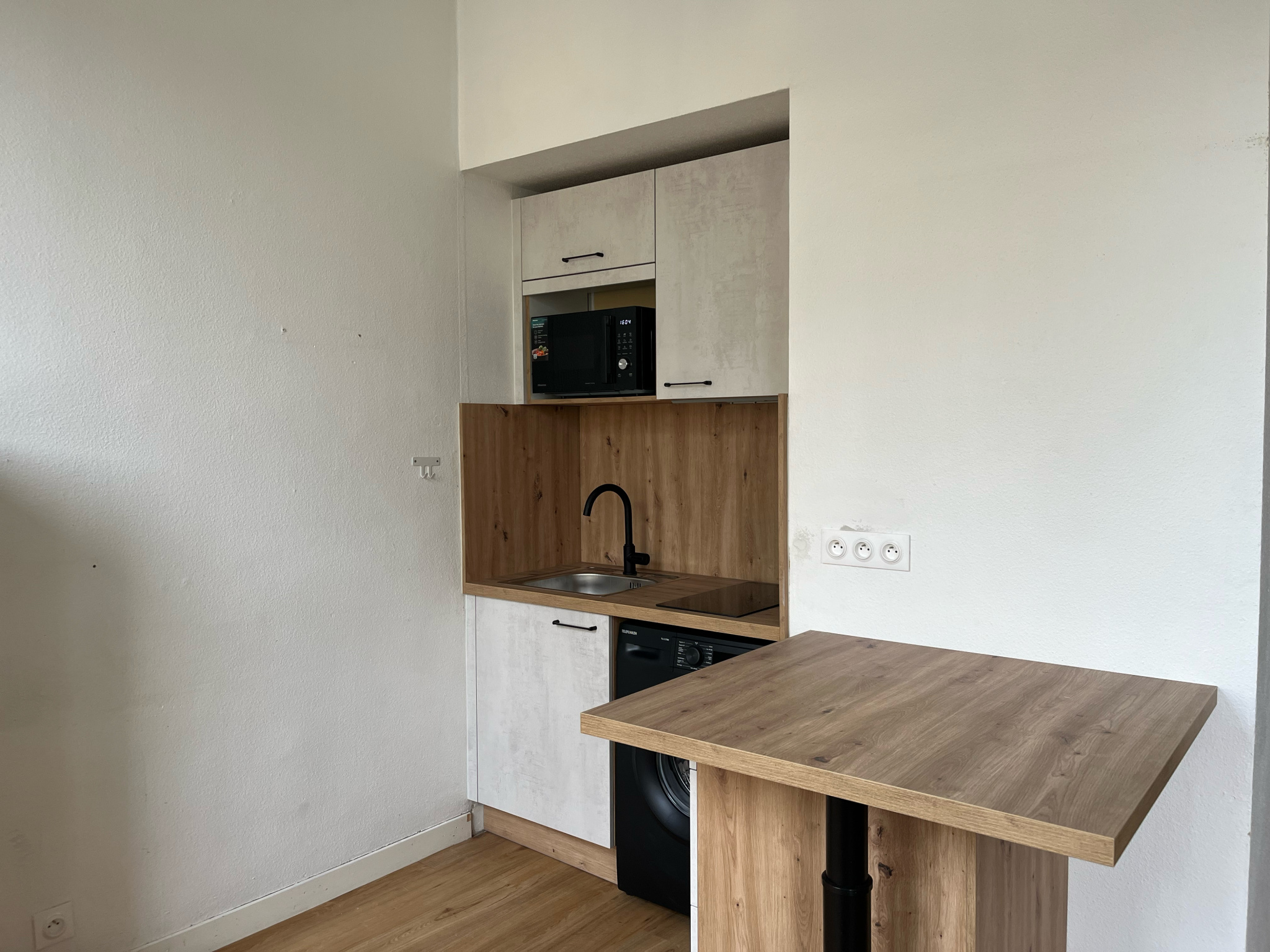 Le logement se compose d’une pièce principale avec coin cuisine, d’une salle d’eau, d'un WC séparé et d’un placard de rangement.