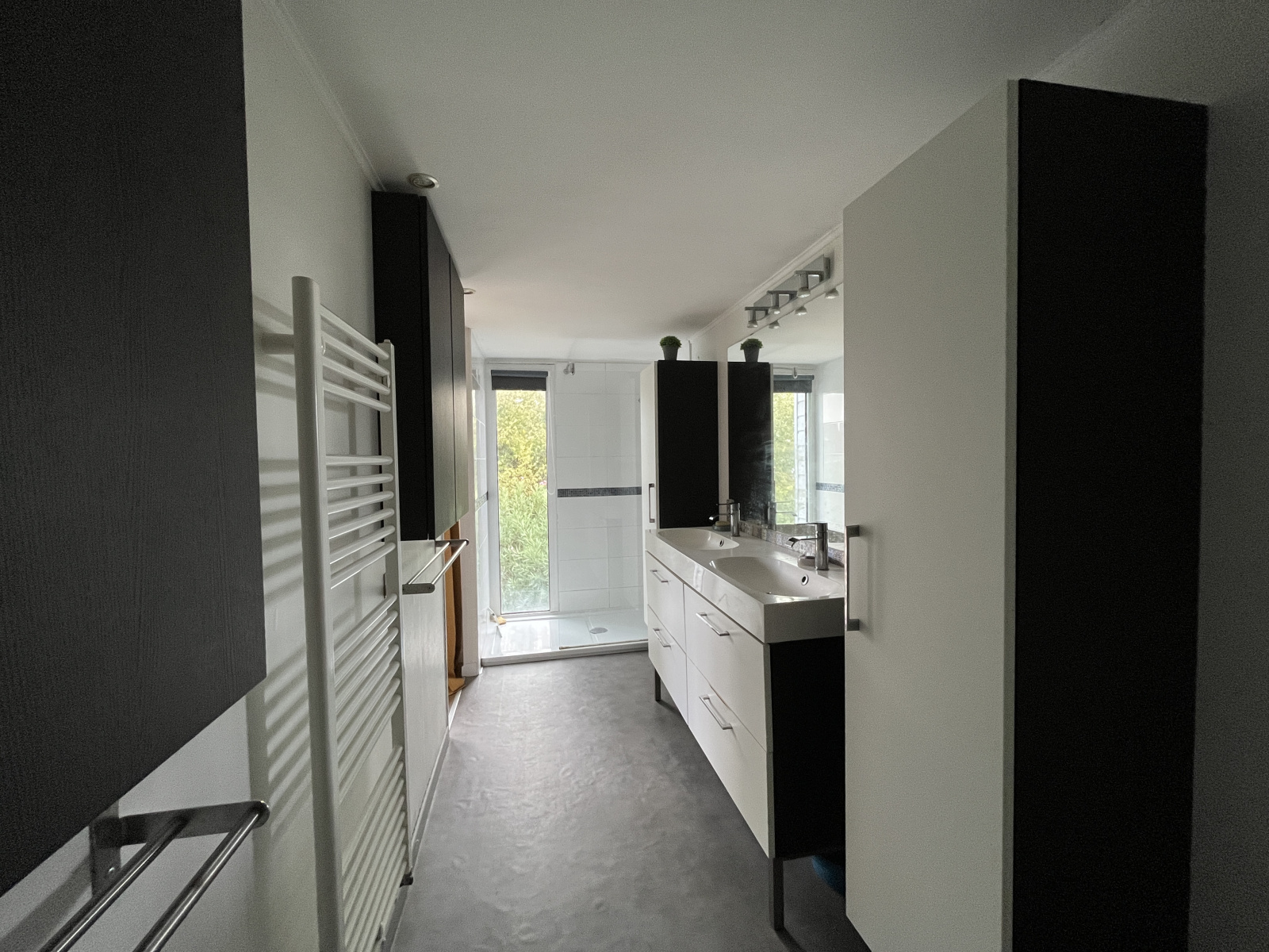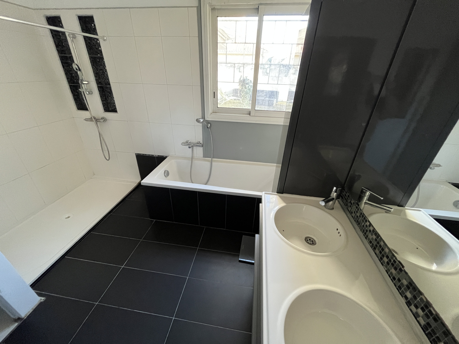 Une aile de maison avec 3 chambres dont deux séparées par une petite salle d'eau avec wc commune.Une troisième avec sa petite terrasse attenante et une grande salle de bains avec douche et baignoire.