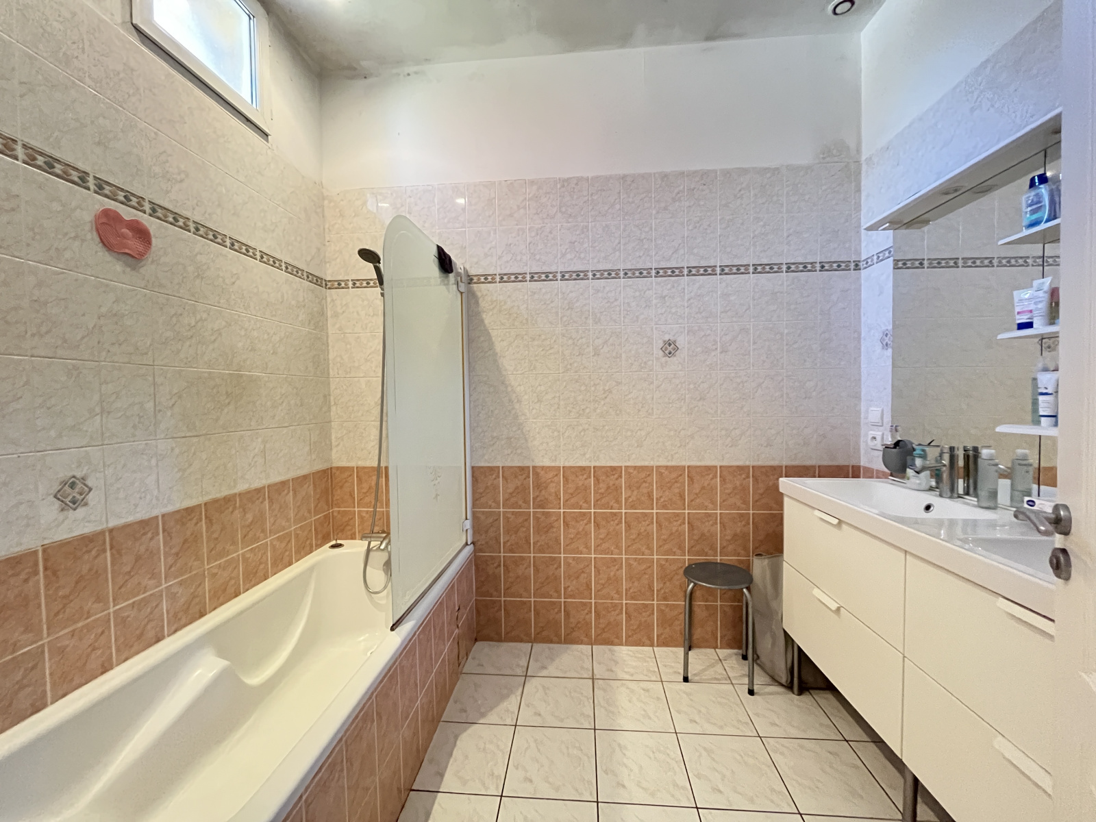 A l'étage deux belles chambres avec placards, un wc séparé et une grande salle de bains.